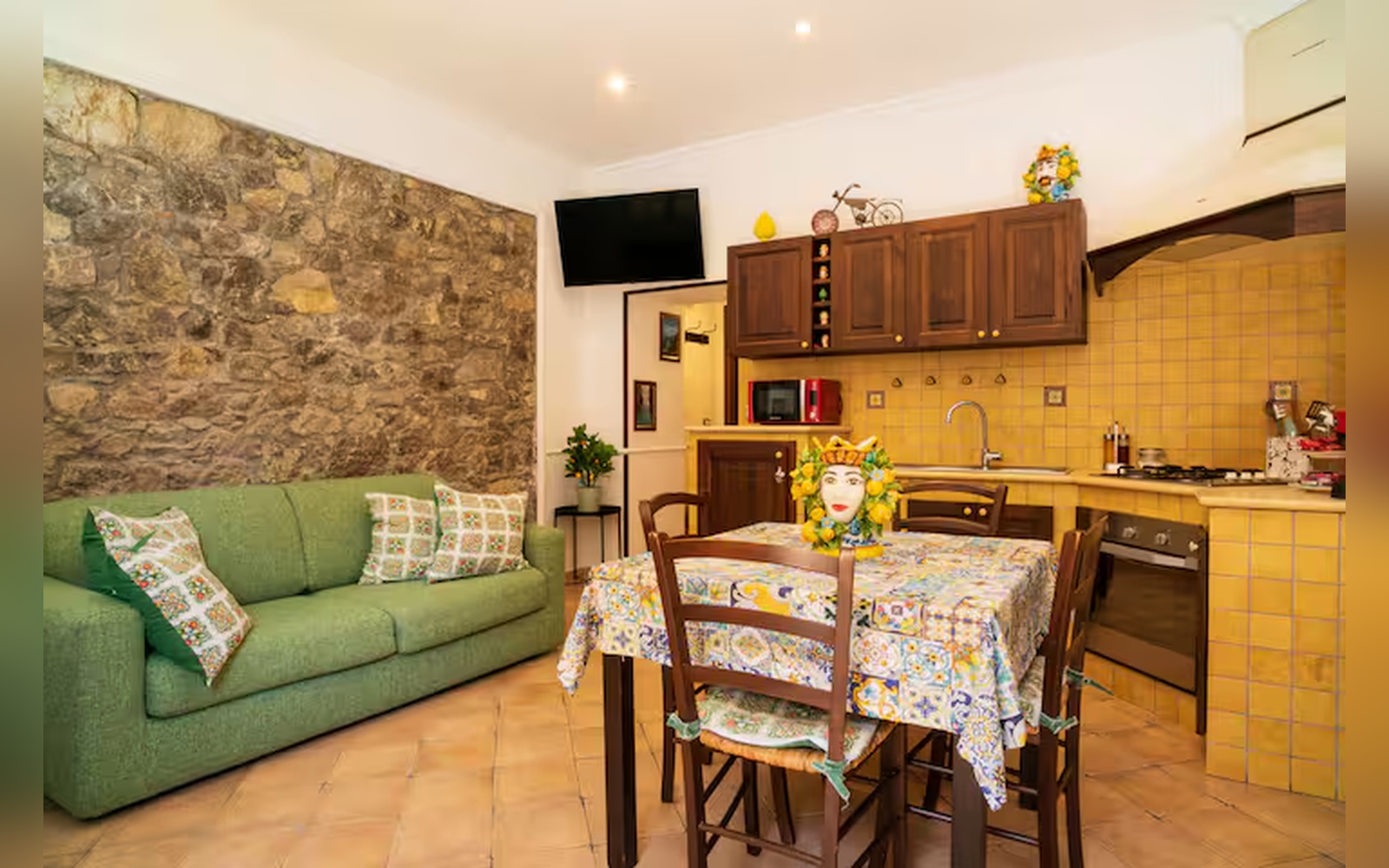 Appartamento composto da una camera matrimoniale, soggiorno con divano letto, bagno e cucina attrezzata. Gli spazi interni sono luminosi e funzionali, mentre l’ampia area esterna privata di 52 mq rappresenta il vero valore aggiunto: uno spazio perfetto per colazioni all’aperto, aperitivi al tramonto o momenti di relax dopo una giornata di mare. Soluzione ideale per chi desidera vivere Taormina in totale autonomia.